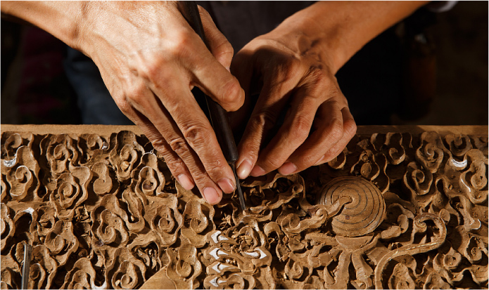 上百名20年以上木工經(jīng)驗的工藝工程師主導雕刻、鑲嵌、拼花等傳統(tǒng)手工藝;118道嚴謹制作工藝;6道高溫蒸煮及烘干處理;新美式環(huán)保涂裝工藝;歐洲進口檢測設備,